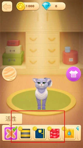进入猫咪养成界面后,通过解锁猫咪装扮和道具,来提升猫咪的活跃度。