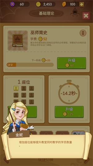 解锁更多强大魔法技能强大实力,提升学校的战力。