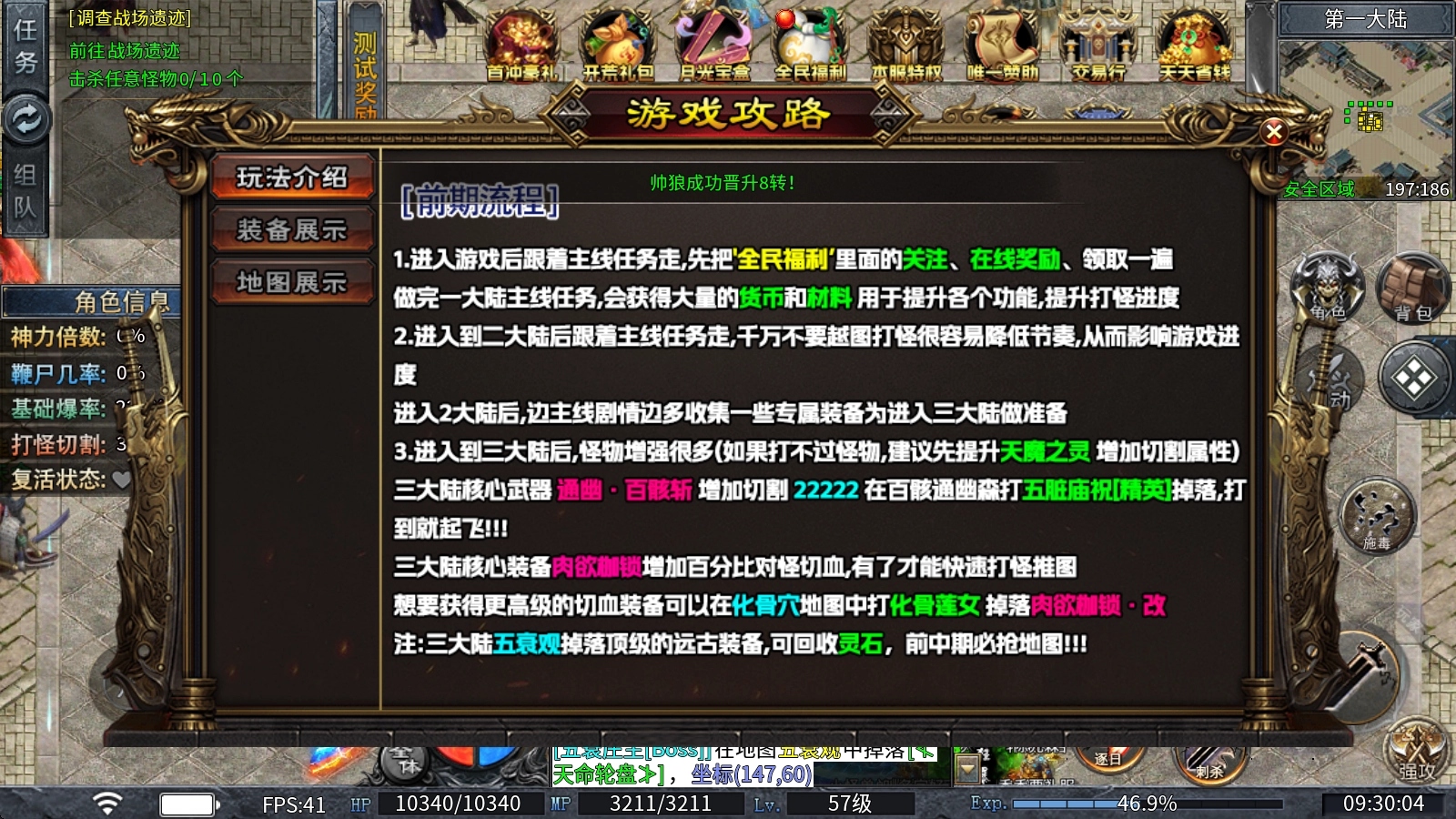 进入游戏后跟随主线任务推进,先把“全民福利”板块里的关注奖励、在线奖励都领取一遍。