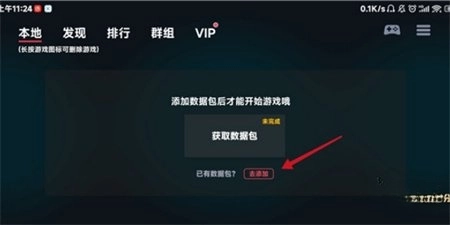 安装好蛋蛋模拟器后,启动该软件,接着在本地界面找到并点击添加数据包的选项。