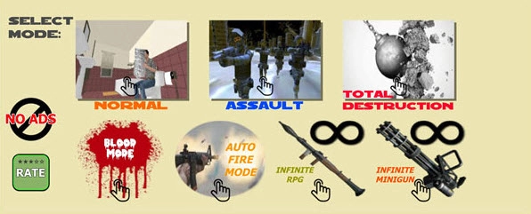 在这款射击游戏里,锤子、棒球棒、枪、手枪、狙击枪、霰弹枪、机枪、rpg、手榴弹、弓、刀、武士刀、炸药等各类武器都可供您自由选用,为您的战斗提供有力支持。