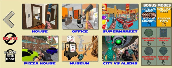 现在进入地图选择界面,你可以挑选house(房屋)、office(办公室)、supermarket(超市)这类地图。