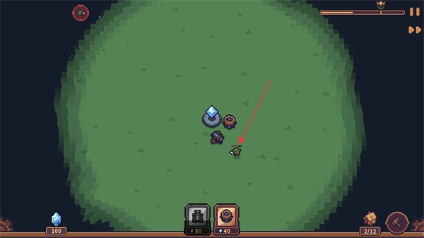 进入关卡后,你可以使用初始资源建造下方的建筑,依靠这些建筑来抵御兽人敌人,与此同时收集场景里的晶石资源,用来升级建筑。