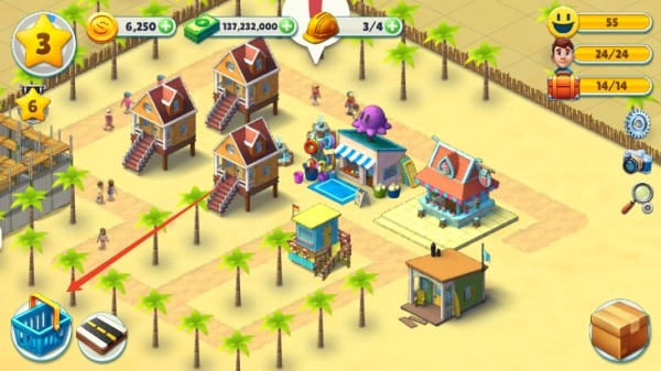 进入舒适小镇游戏后,点击左下角的购物车图标就能进入商店。