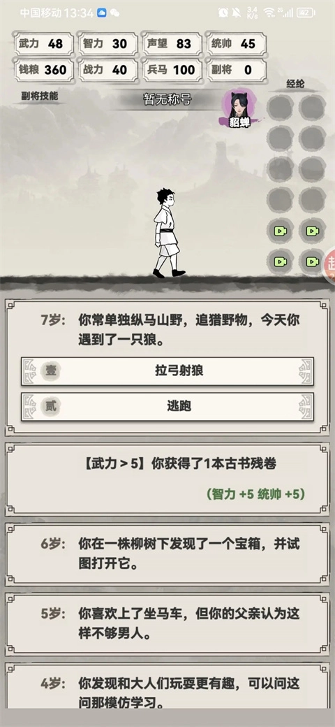 一开始就选择吕布线,无需携带任何物品,直接进行随机属性分配,接着疯狂点击。当出现抉择野狼的选项时,选择逃跑,这样角色就会直接死亡。由于每次重生都会获得一次送礼物的机会,所以快速死亡后挑选一个最高级的宝物,拿去送给红颜,好感度很快就能刷满。