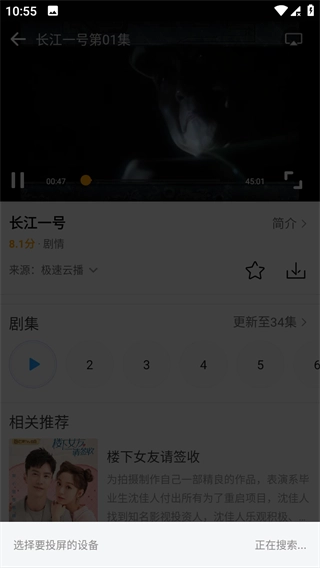 选择详细页面里的按钮,还能把剧集缓存到本地,方便离线观看。