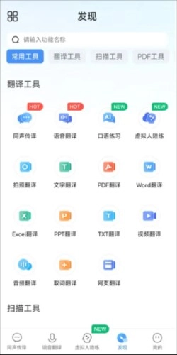 打开同声传译王,点击发现页;