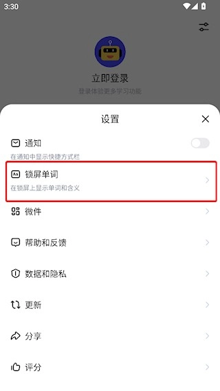在弹出的选项里选择锁屏单词