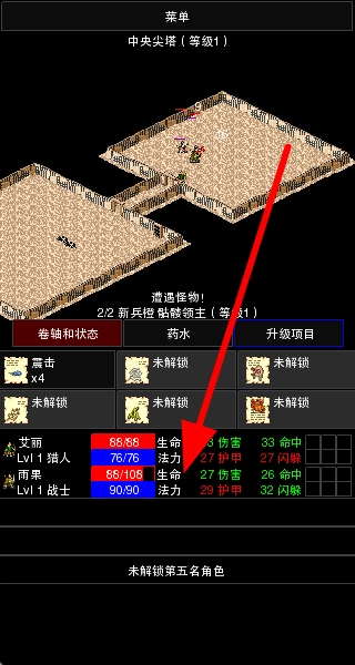 查看角色的卷轴、状态、药水与升级项目等内容,掌握角色当下的能力情况以及可提升的方向,以此为即将到来的冒险做好准备。