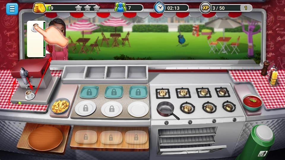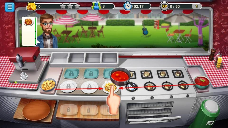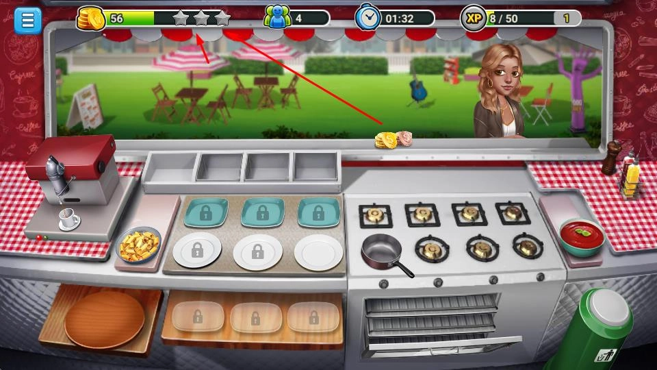 通过关卡挑战获取奖励,用于升级餐车的烹饪设备、扩大操作空间或解锁新的制作技能,这些升级能提升制作效率,帮助应对后续更复杂的订单和更高难度的关卡。
