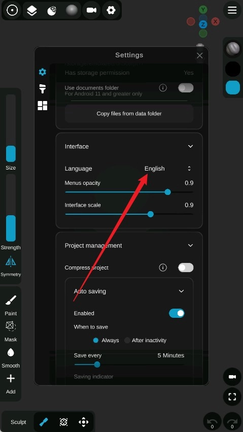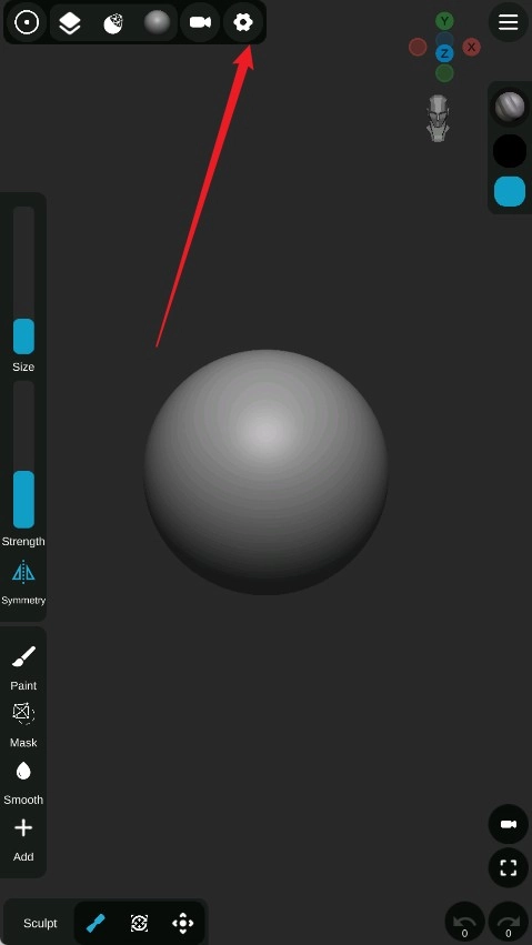 打开Sculpt+建模软件,进入主界面后,点击顶部那个齿轮样式的“设置”图标。
