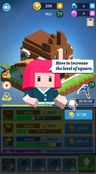 持续收集金币,再用这些金币购置各类建筑材料,以此来搭建属于自己的房屋。