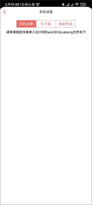 这个时候我们还没把伴奏上传到软件里,进入手机伴奏界面后会看到提示,让我们把文件放到指定文件夹中,这时候去手机的文件管理里移动文件就可以了。