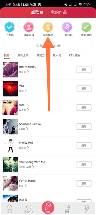 在本站完成安装后,点击打开进入,接着点击录歌按钮,即可进入点歌台界面。