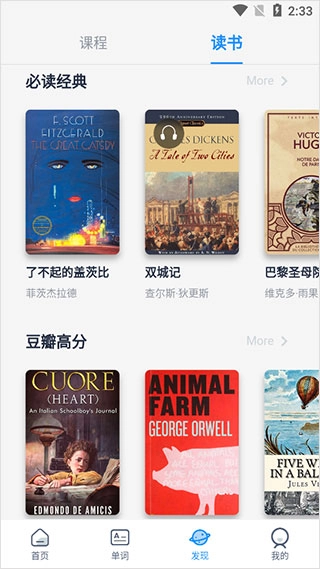 软件内收录了数十部经典外国名著,不仅同步提供语音版本,还支持点击查词与划线翻译功能,助力用户打造更丰富的英文原版书库,享受更便捷的名著阅读体验。