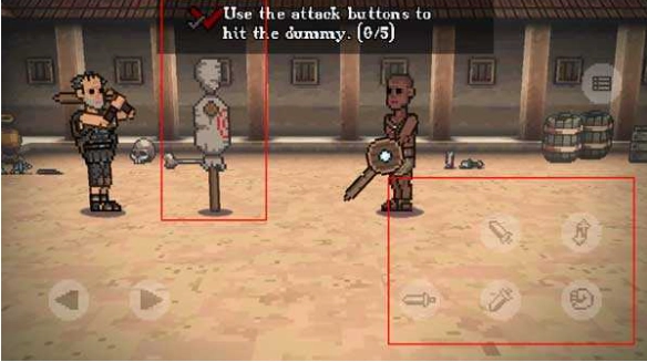 接下来是具体操作环节,你需要操控剑点击右侧的按钮来攻击木头人,完成攻击后,新手教程就会结束。