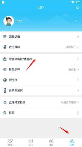 在本站安装后点击打开进入,接着点击页面底端的“我的”选项,随后点击“智能体脂称/体重秤”选项。