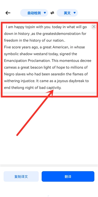 在线实时进行文本翻译,选择源语言和目标语言。