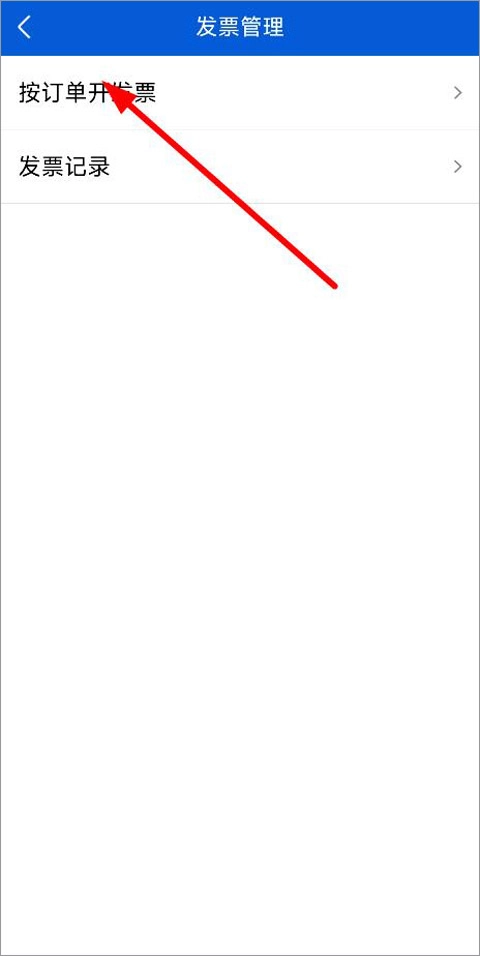打开发票管理页面后,能看到“按订单开发票”和“发票记录”两个栏目,点击“按订单开发票”即可。