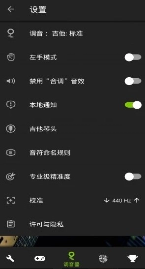 专业的高精准度功能,适合高水平乐器使用者(可通过设置选项卡开启)。