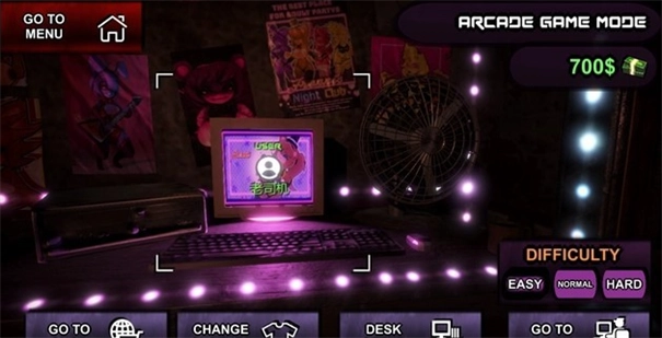 从左到右依次为:商店、服装、桌面摆设和开始游戏。而开始游戏的上方则是难易度选项。