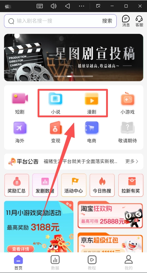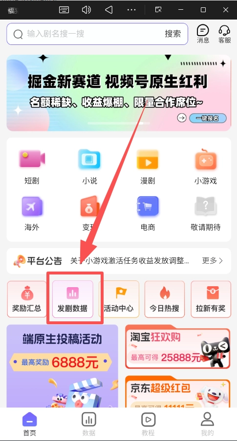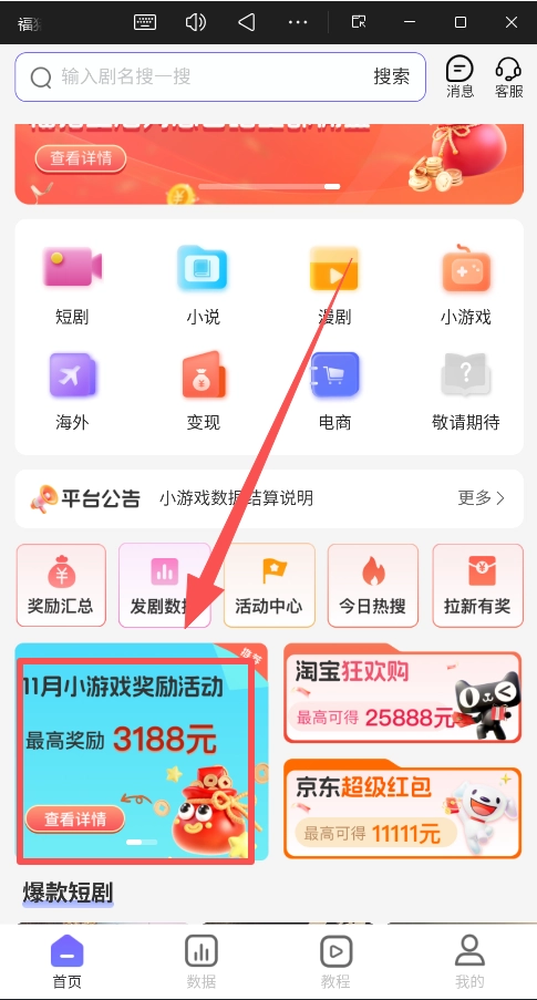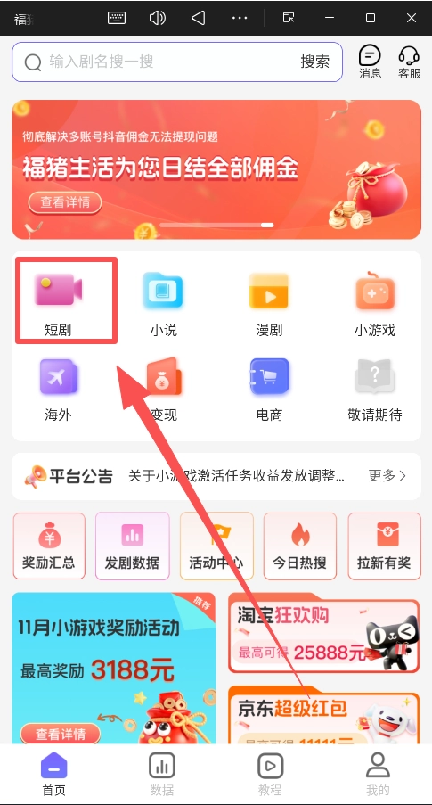 回到“首页”,在对应的项目分类(比如“短剧”类别)里,挑选一个你打算推广的具体内容(例如一部热门的爆款短剧)。