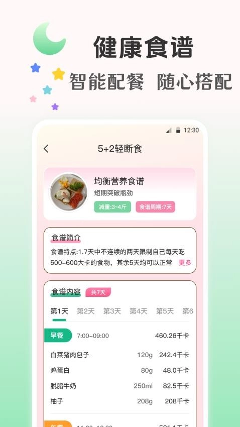 根据需求就能智能配餐,个人饮食可以自由搭配,轻松把控每日摄入的热量。