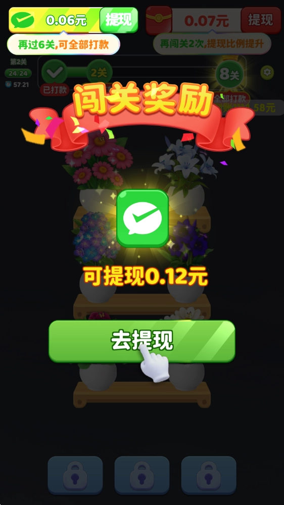 成功消除所有花朵后就可以过关,并获得过关奖励。