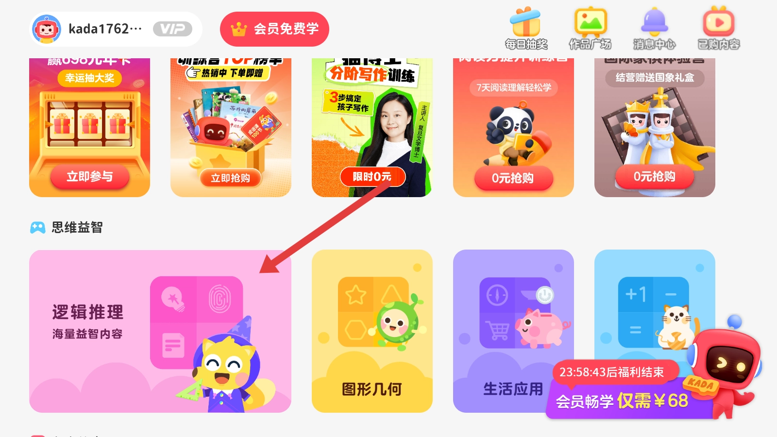 打开有道卡搭后,在首页找到【逻辑推理】板块并点击进入,就能玩到有趣的思维益智类游戏啦。