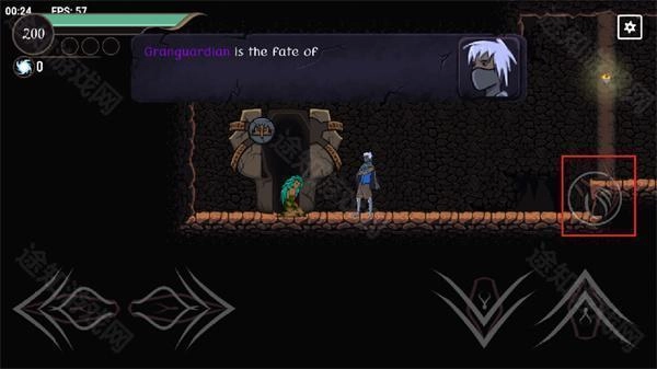 6、当你点击屏幕右下角的向下箭头按钮时,能让角色从石壁上跳落下来。
