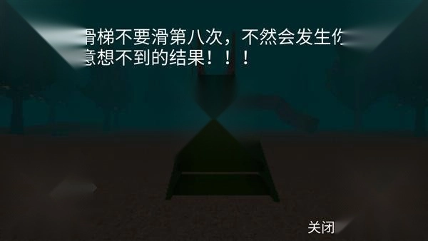 《恐怖滑梯》是一款恐怖主题的冒险解谜游戏,整体采用暗黑风格设计,搭配恰到好处的音效,成功营造出惊悚的氛围。游戏以第一人称视角展开,玩家需操控角色在不同场景中进行滑滑梯操作,过程中会触发各类随机事件,提升了游戏的挑战性。此外,各个场景之间能够相互切换,不同场景对应着独特的解谜玩法,玩家需要搜寻有用的线索并完成解谜步骤,方可顺利逃脱。