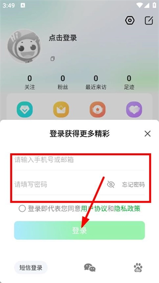 在密码登录界面,输入手机号或邮箱以及对应的密码,随后点击登录按钮,即可完成登录流程。