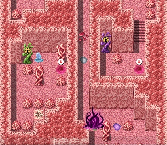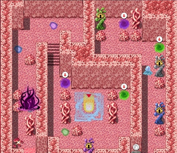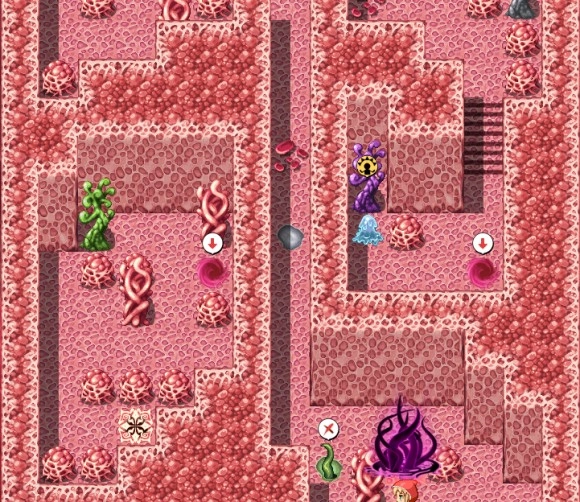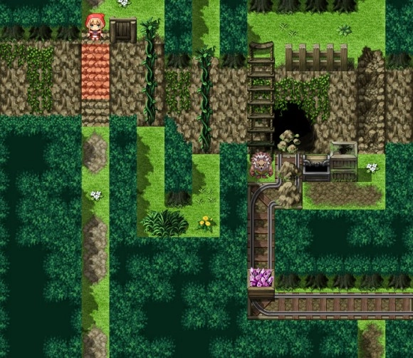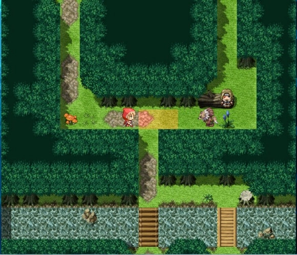 然后踩下中间的机关让石头坠落,接着一路向下行进(要是有技能就开启,这样能多走3格),走到终点前的草丛处等待小红帽过来(按shift键可以原地待机),和她对话就能通关了。