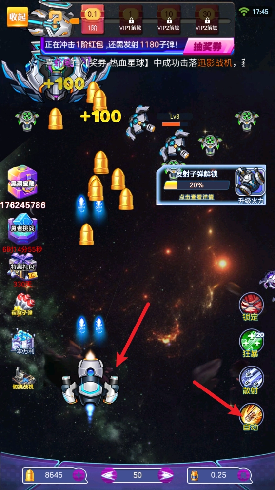 游戏里点击飞机就能射击,拖动也能射击,右下角还可以开启自动模式。