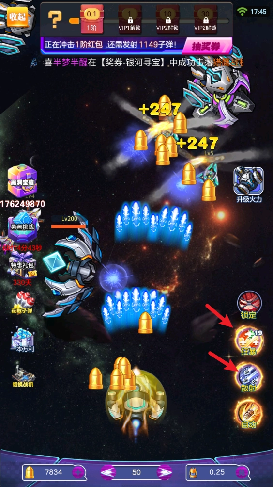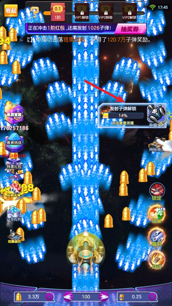 射出一定的子弹数后就能够升级自己的火力了。
