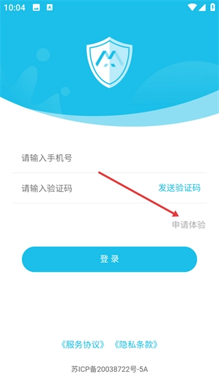 在申请体验的信息填写页面,需依次完成以下操作:输入机构名称,选择所在城市,填写负责人姓名与手机号码,然后获取并输入验证码。