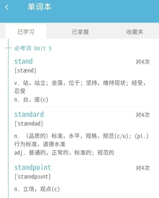 系统会自动收录你已经学习过的词汇,并且实时跟进你对这些词汇的掌握情况。哪些词汇已经被你牢固记住了?哪些词汇还需要你再次复习巩固?所有信息都清晰明了,让你能够更精准地找出自己的知识漏洞并进行补充学习。