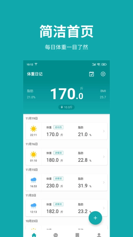 体重日记是一款界面极为简约的体重记录软件,用户借助它可以轻松掌握自身的体重变化和健康状况,软件还能依据用户的需求给出专业的锻炼方案,助力用户维持理想的体重与匀称的身材。