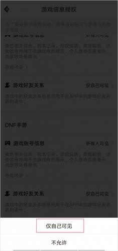 4、进入游戏信息授权界面后,点击游戏账号信息右侧的所有人可见选项。