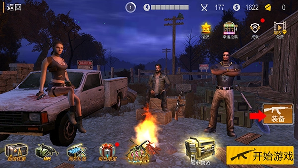 在本站下载并安装游戏后,完成基础教程就能进入下方的主界面,此时点击右侧的装备按钮,即可进入武器更换界面。
