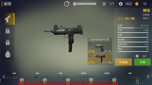 进入武器界面后可装备或升级武器