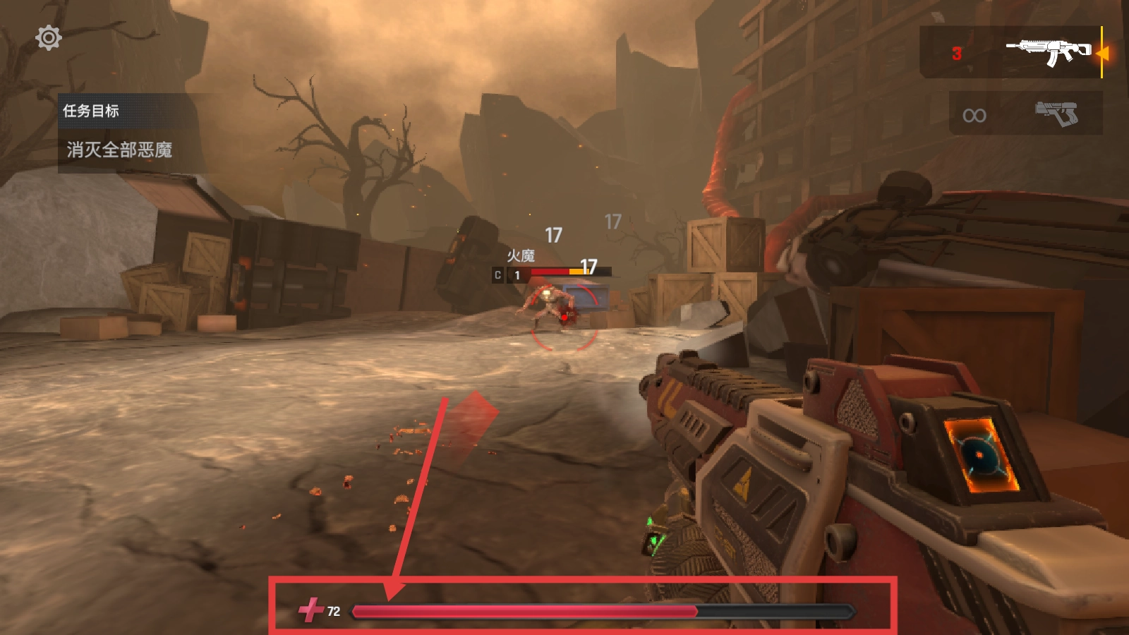 战斗时要留意生命值【72】,适时调整作战策略,保证在击退恶魔的过程中维持充足血量。