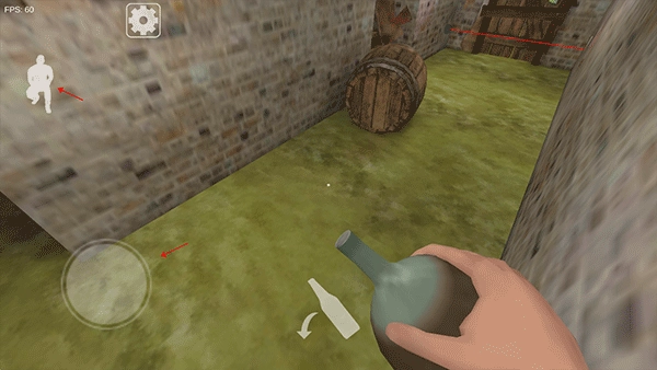 通过屏幕上的虚拟摇杆来操控角色移动,点击左上角的“人物”按钮能够使角色下蹲,这个动作可以用来躲避危险或者隐藏自己。