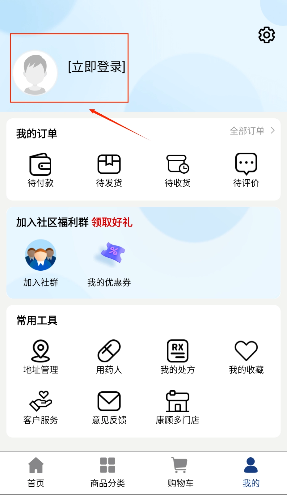 在首页的搜索框里输入药店名称,就能快速定位到对应的药店,进而购买所需药品。