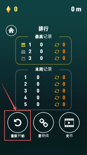 继续挑战:当界面出现“要继续”的提示时,点击“重新开始”按钮,继续向更高记录发起冲击。