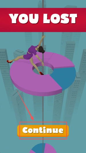 失败后继续:当游戏失败弹出“You lost”提示时,点击“Continue”按钮即可重新挑战当前关卡。