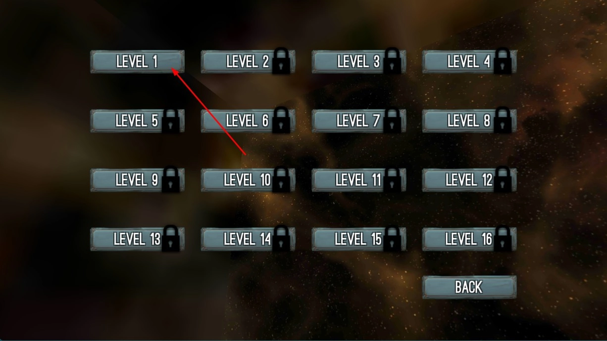 选择【LEVEL1】,开启第一关,熟悉游戏的基础玩法。
