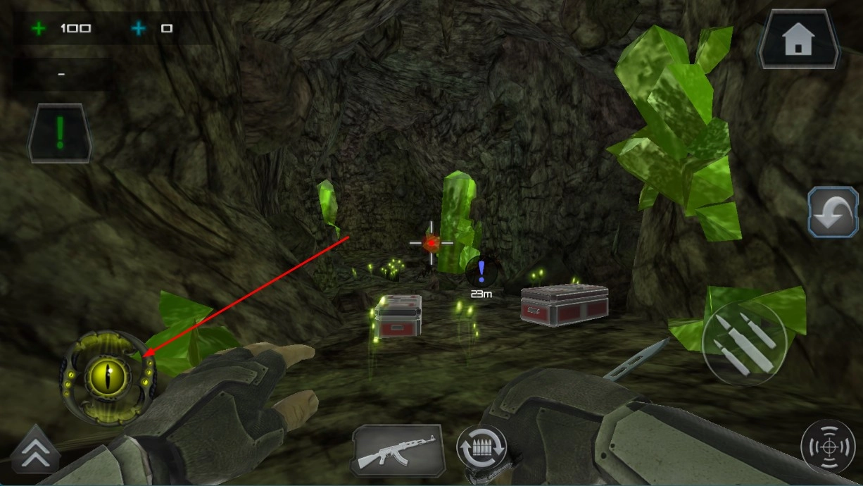 在洞穴场景,按左侧特殊图标进行角色移动。