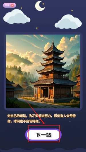 完成拼图后,点击“下一站”继续游戏。