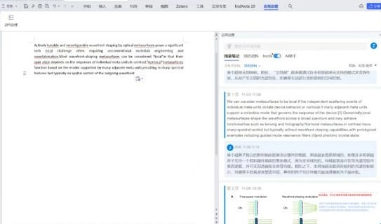 “边写边搜”功能支持直接打开文献阅读,能在文献页面直接添加批注,也可摘录文献内容并在旁补充笔记,同时还配备了各类翻译工具,使用起来十分便捷。